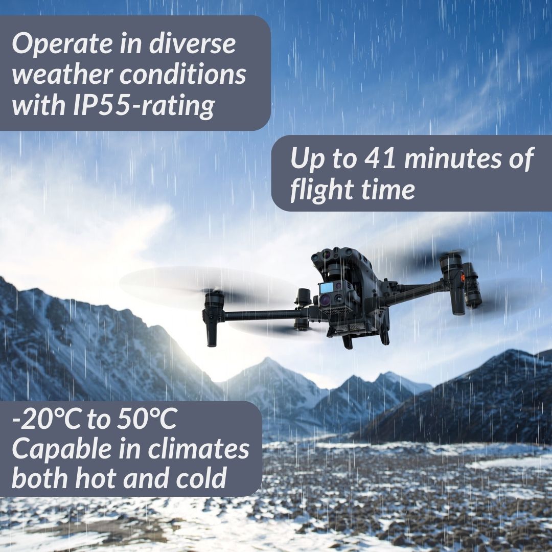 With IP55 protection, the M30 can easily handle adverse weather and temperatures ranging from -20°C to 50°C.